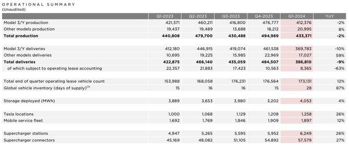 首先,全球特斯拉库存在第一季度大幅增加,达到了相当于28天的供应量,远比去年底的15天高出许多。这显示了特斯拉需要花费更长的时间来清理库存。