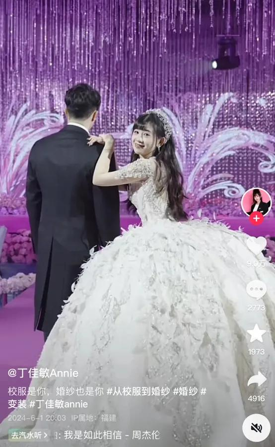 丁佳敏也在其社交媒体平台上官宣了喜讯,并配文“校服是你,婚纱也是你”。