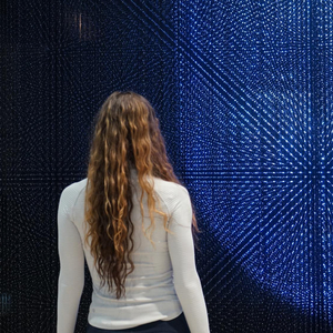 2023年1月8日,一名女士在美国拉斯维加斯消费电子展上体验智能科技。新华社发(曾慧摄)