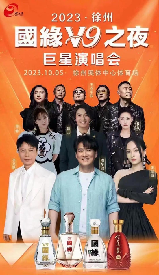例如2023年营收成功破百亿的今世缘,其大本营市场江苏正是开演唱会最多的省份,今世缘也是去年举办演唱会最多的白酒品牌之一。张信哲演唱会、张韶涵演唱会、汪峰演唱会、林志炫演唱会、国缘V9之夜·巨星演唱会、国缘四开·宜兴群星演唱会……一场场演唱会也为百亿今世缘出力不少。