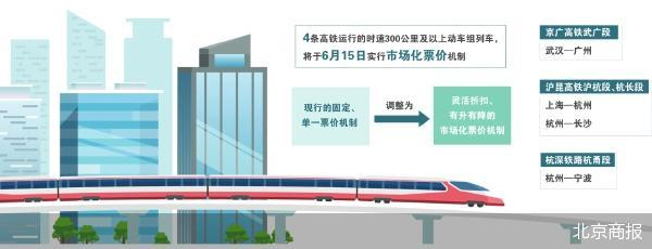 在“优选一等座”的消息出来前不久,国铁集团刚公布了将于6月15日起实行市场化票价机制的4条高铁线路,具体包括京广高铁武广段,沪昆高铁沪杭段、杭长段,杭深铁路杭甬段。