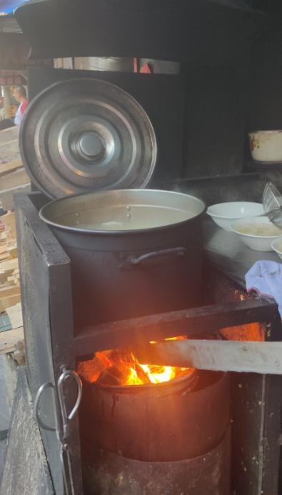 小店的柴火灶。上游新闻记者 齐鑫 摄2、柴火馄饨的烟火气尹正根坚持卖小馄饨,也坚持使用柴火,他认为柴火是“人间烟火气”最直接的体现。“柴火馄饨,小火慢炖,搁点辣油好吃得很,这是一种比较原始的手法。”尹正根告诉记者,自己小时候吃的就是柴火馄饨,柴火是一种回忆。尽管已经使用上天然气这种清洁能源,但他依然把使用柴火作为自家小店的特色。 正是这把柴火吸引了不少顾客专程前来体验。在尹正根的小店前,上游新闻记者遇到了来自湖北的周女士,她告诉记者自己来南京探亲,朋友向她推荐了小店,柴火馄饨让她想起了自己的童年。“火需要一个过程来慢慢升温,煮出来的东西味道不一样,就跟人一样。慢慢沉淀的东西还是不一样的。”周女士感叹道。来自江西的欧阳先生和家人到南京旅游,根据网上的攻略来打卡“又见炊烟柴火馄饨爱心小吃”店。尽管身为江西人的他更爱吃辣,但他认为小店售卖的鸭血粉丝汤和柴火馄饨味道都很不错。同样正在品尝柴火馄饨的杨旭(化名)是南京本地人,他告诉上游新闻记者,自己小时候见过很多小推车,车上售卖的小吃是用柴火烧制的,但现在已经十分少见,“用柴火烧的(小馄饨)确实挺有特色。”将小馄饨下锅两三分钟捞起,盛进放入盐、味精、葱花、榨菜末和一勺高汤打底的碗中,这就是属于南京人舌尖上的记忆。