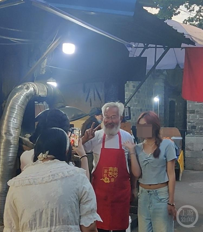 尹正根小店的柴火馄饨。上游新闻记者 齐鑫 摄如今,这份南京味也正在被越来越多的国际友人了解、感受。品尝完柴火小馄饨并跟尹正根合影的豆女士来自新加坡,她曾在网上刷到过小店,此番全家趁暑假来到南京老门东旅游参观,意外发现尹正根和他的小店便决定打卡体验,“我知道他做(柴火馄饨)很久了,而且这是传统的(馄饨),价格也不贵。”像豆女士这样来品尝柴火馄饨的国际友人,尹正根还遇到过很多,他给上游新闻记者讲述了多位外国顾客的趣事,有两名来自新加坡的女演员用餐过后桌面非常干净让他印象深刻,还有一名来自英国的顾客头戴一顶绅士帽不苟言笑的样子也让他难忘。除了远道而来的顾客,还有国际友人远渡重洋前来探索馄饨的“秘密”。尹正根告诉记者,2018年,来自法国的美食媒体人唯青和团队来到小店,向其学习中国馄饨的制作方法,还对馄饨进行了创新。“她说我的馄饨是开水煮出来的,把佐料倒到碗里,她的馄饨是用牛油煎出来的,而且是甜味的,里面包入草莓、香蕉、苹果等水果。”尹正根回忆起唯青制作馄饨的场景,他评价自己这名法国“徒弟”创新出的馄饨味道“很不错”。此后,唯青也曾多次探望尹正根。通过这次交流,尹正根学习了解了法国的饮食文化,而他的柴火小馄饨也借此走向了世界。