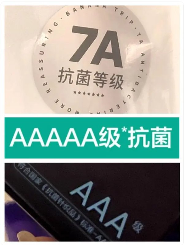 记者还注意到,市面上的抗菌纺织品包装上有3A级、5A级、7A级等不同的抗菌等级,商家表示等级越高抗菌性越好。其实,国标中最高等级是3A级,即产品经过50次洗涤后,仍对3种致病菌具备抑菌能力。而5A级、7A级来自团体标准,在抗菌纺织品团体标准T/GDBX 056-2022中,7A级纺织品是指经过机洗150次后,仍然对金黄色葡萄球菌、大肠杆菌、白色念珠菌、加德纳菌有明显的抗菌抑菌效果。