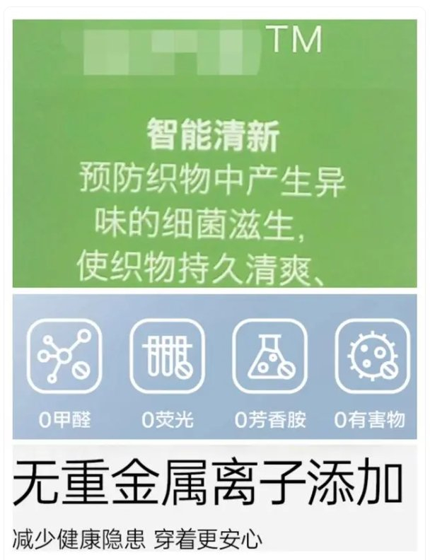 在抗菌纺织品中,“0甲醛”“无重金属离子添加”“智能清新科技”等广告语也很常见。它们同样有“水分”。