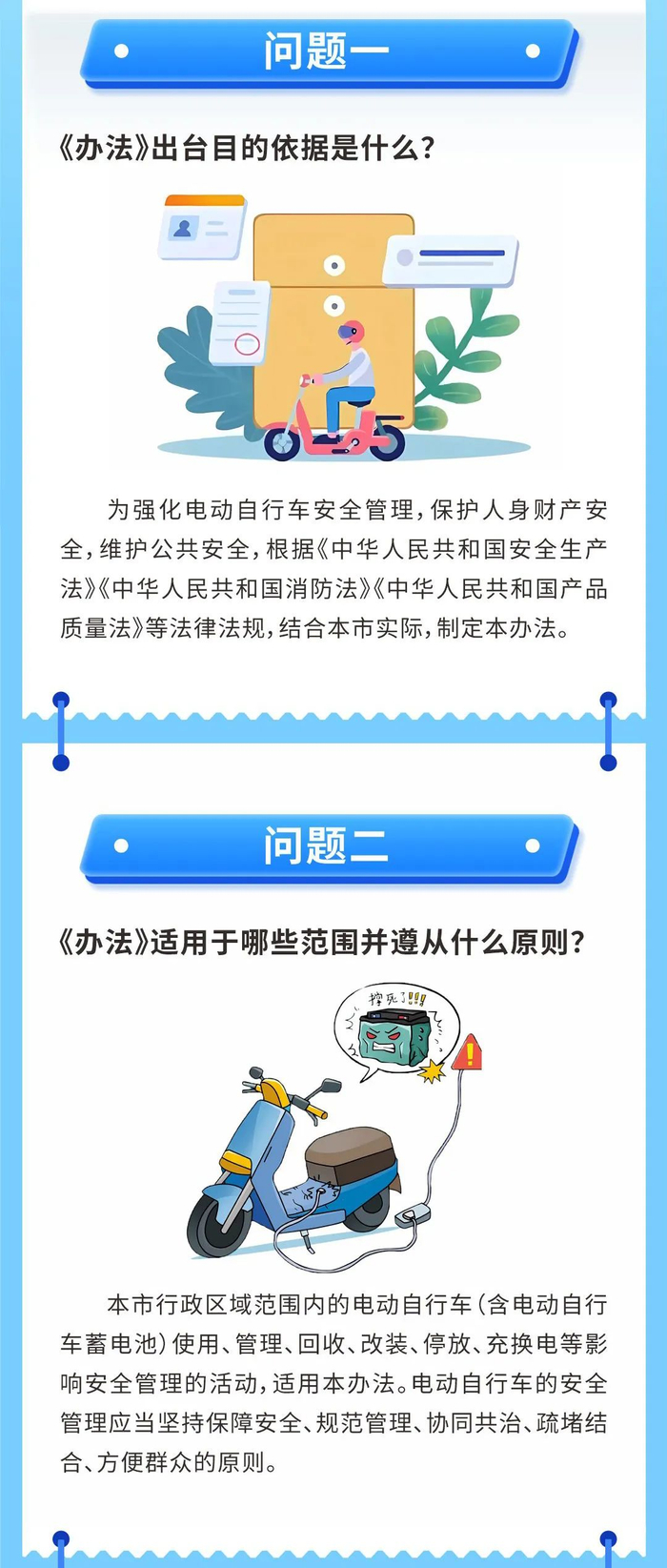 该办法聚焦电动自行车销售、使用、停放等各环节突出风险,明确了各级政府、各有关部门全链条监管责任,细化了单位企业日常管理职责,并对停放充电场所选址、设置予以规定,旨在构建电动自行车全链条治理新体系。