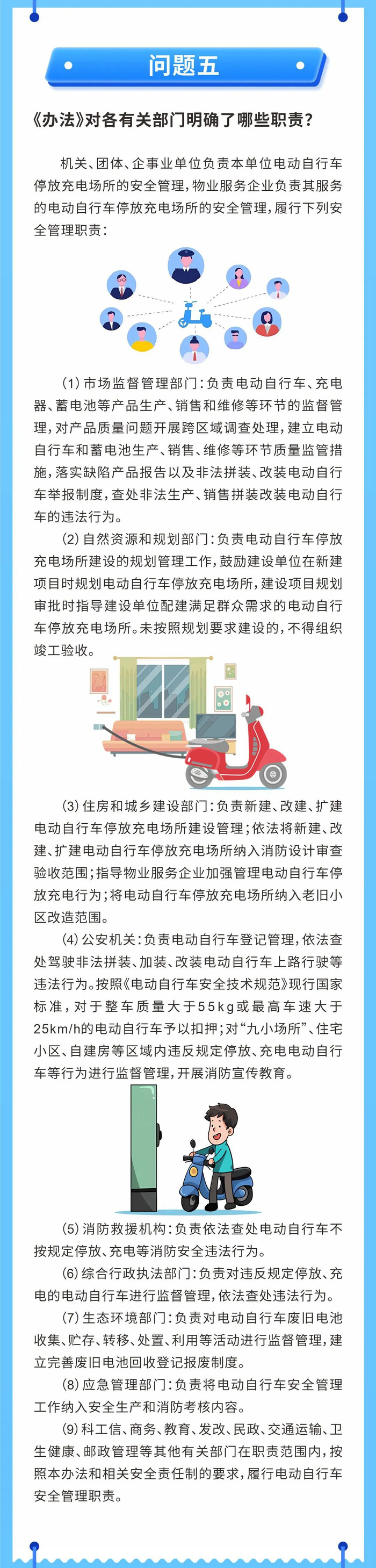 科工信、商务、教育、发改、民政、交通运输、卫生健康、 邮政管理等其他有关部门在职责范围内,按照本办法和相关安全责任制的要求,履行电动自行车安全管理职责。