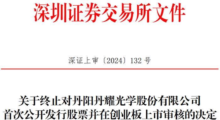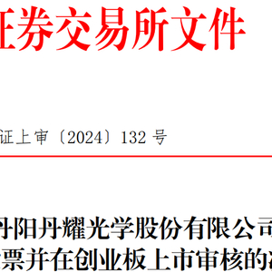 中国经济网北京6月6日讯 深交所网站昨日公布关于终止对丹阳丹耀光学股份有限公司(简称“丹耀光学”)首次公开发行股票并在创业板上市审核的决定。