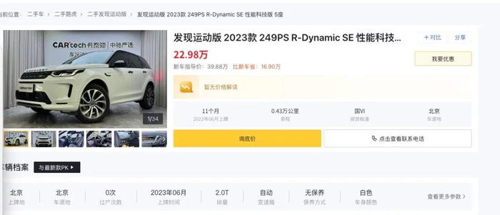 懂车帝上二手车同款路虎发现运动,二手车报价22.98万