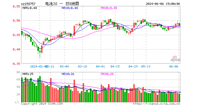 流动性方面,截止6月6日,电池30ETF(159757)近20个交易日累计成交金额2.51亿元,日均成交金额1256.33万元;今年以来,102个交易日,累计成交金额18.31亿元,日均成交金额1795.15万元。