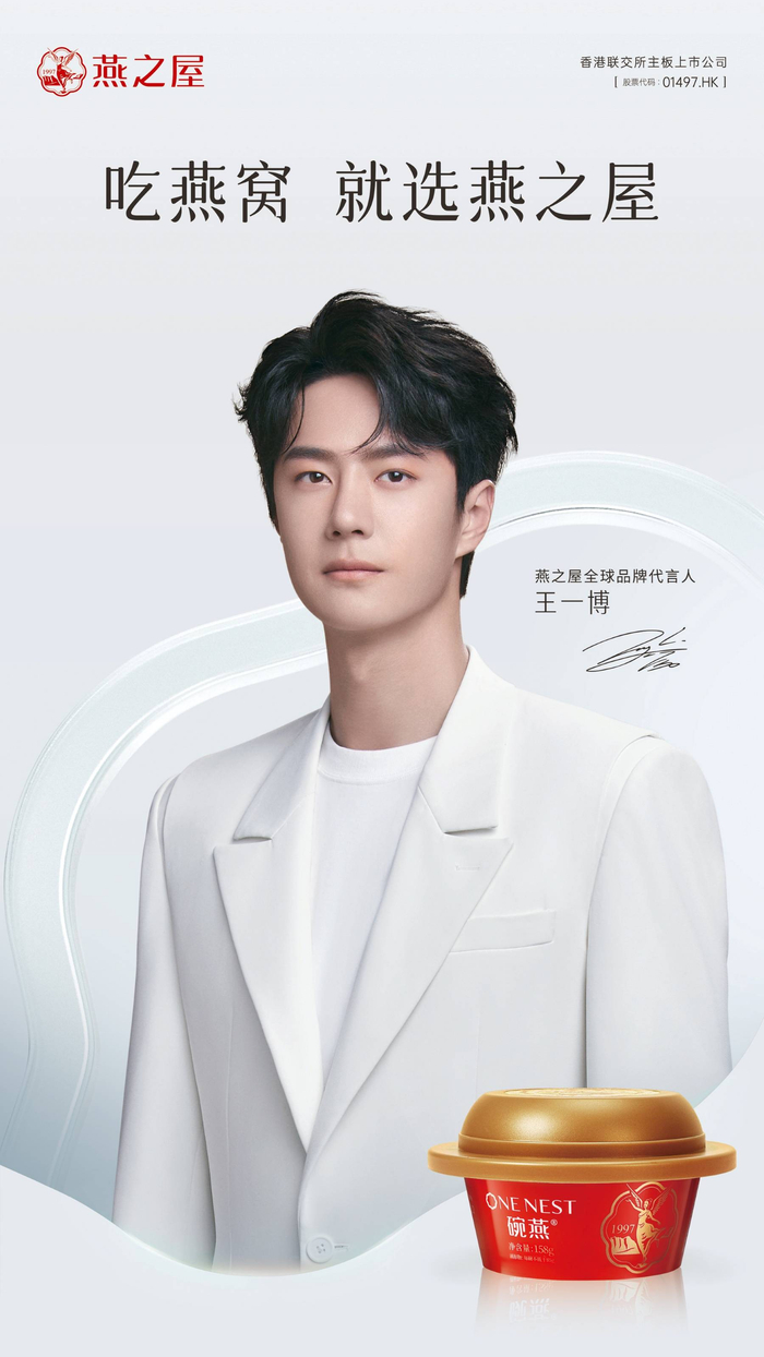 继今年1月巩俐成为燕之屋全球品牌代言人后,于5月20日,燕之屋再度官宣,王一博也成为公司全球品牌代言人。官宣当天,话题“王一博燕之屋全球品牌代言人”也一度冲上微博热搜。
