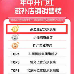在2024年天猫年中开门红(5月20日至5月28日)滋补店销售榜排名中,燕之屋官方旗舰店销售额跑赢其他品牌。与此同时,在天猫年中开门红健康行业店铺销售榜单中,燕之屋官方旗舰店位列第二,这背后彰显的是燕之屋的品牌影响力。