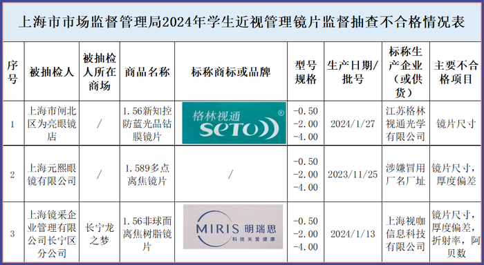 3批次镜片尺寸不合格