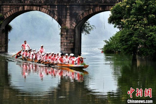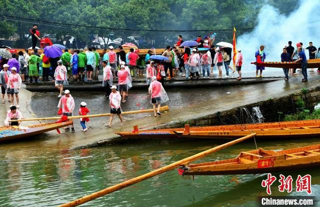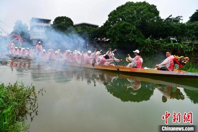 6月6日,福建省福州市长乐区江田镇村民们举行龙舟试水仪式。当日,福建著名侨乡长乐众多新造龙舟举行试水仪式,迎接端午节龙舟赛。张斌 摄