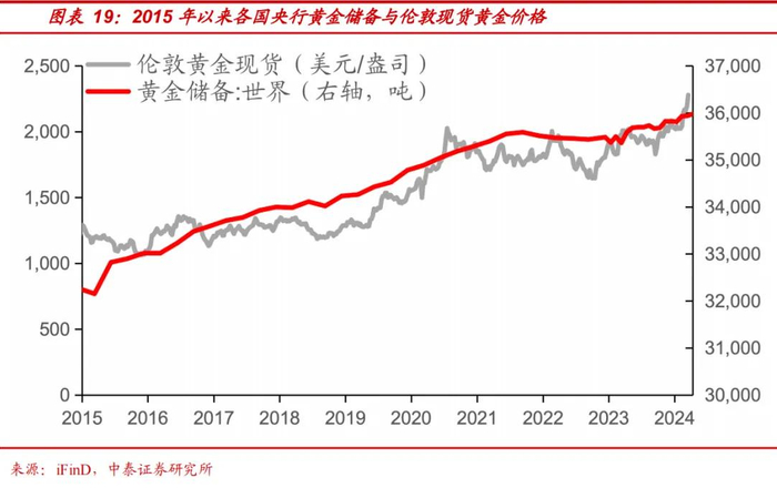 世界格局的变化,导致储备资产多元化的必要性和紧迫性在抬升,客观上加速了各国黄金储备的再平衡。去年以来各国央行都在购入黄金以增加的黄金储备,例如,我国央行已经连续18个月购入黄金。