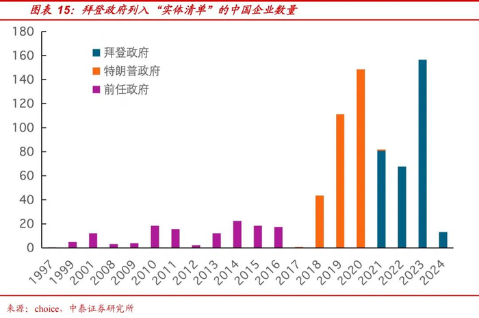制造业扩张的过程中,为了保护本国企业和建立科技壁垒拉开差距,贸易保护将进一步增强。为了发展制造业,建立比较优势,欧美国家将从只限制最先进、最尖端的科技变为只要能“卡脖子”的成熟的技术,甚至是设备的维护、维修也会加强限制。