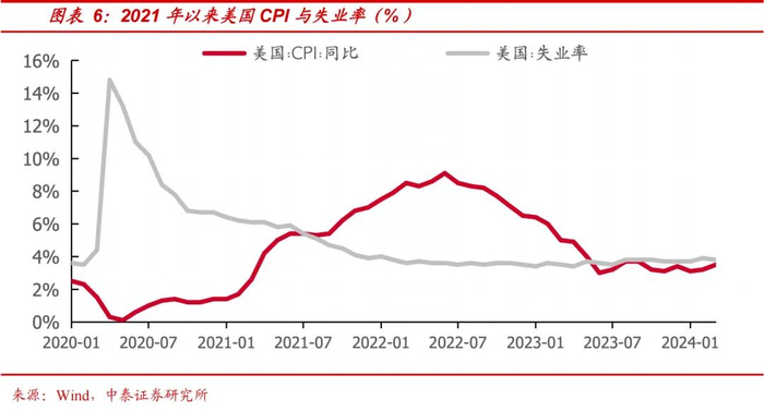 微观的差异往往是宏观变化的反映,而这两种视角的迥异,也正是欧美企业和中国企业的比对。全球化的效率视角下,美国企业以“轻资产、高利润、高附加值”为特征进行跨国发展,造就了美国在设计,研发等具有高附加值的制造服务业以及金融业上的成功。整体来看,企业高利润持续推动美股走牛,驱动员工收入预期上升,进而推升消费需求与通胀,带来良性循环。在这种企业良好基本面的支撑下,美国经济内需较为旺盛。疫情冲击,叠加财政的直接补贴,使得美国CPI快速走高,失业率整体维持低位。