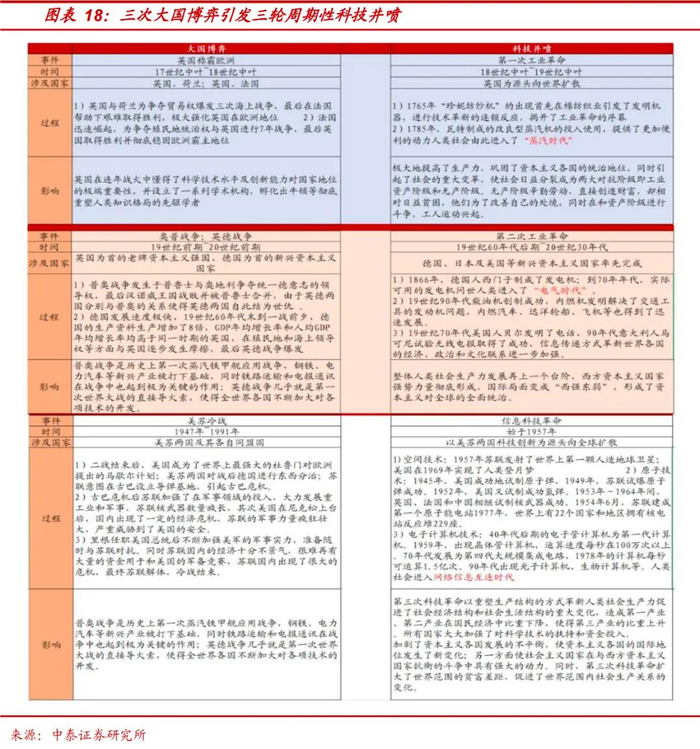 这种科技竞争的加剧,必然会催生一次人类科技水平的进一步提高。从历史视角来看,历年来的科技周期都起源于大国竞争,东西方竞争的日趋激烈,本质上也在孕育新一轮科技革命的“黎明”。
