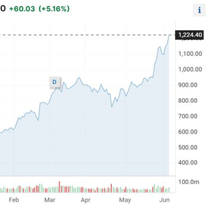 周三(6月6日),AI总龙头英伟达的股价实现关键里程碑。当日收盘股价涨超5%,报每股1224.4美元,创下了历史新高的同时,市值也随之突破3万亿美元,超越苹果公司的总市值,排名美国第二位。