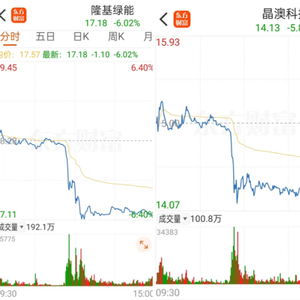 公元2024年6月6日,对于所有光伏人与投资者来说,似乎又是无数个悲伤的日子中的某一天。这一天,光伏龙头概念股遭遇爆锤,具体来说,是在上午11:15,依旧以隆基绿能为首。