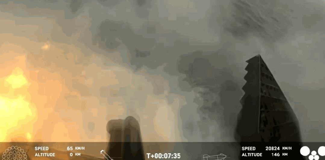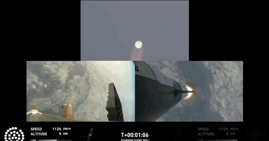 北京时间20点52分:星舰飞船与“超重”火箭成功实施热分离,与此同时“超重”火箭实施翻转机动和回推点火。