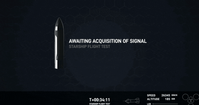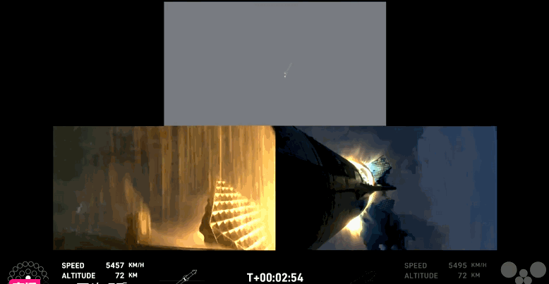 北京时间21时28分:信号恢复,星舰飞船正在平稳飞行,大约10分钟后重返大气层,这将是本次试飞的最关键一步。