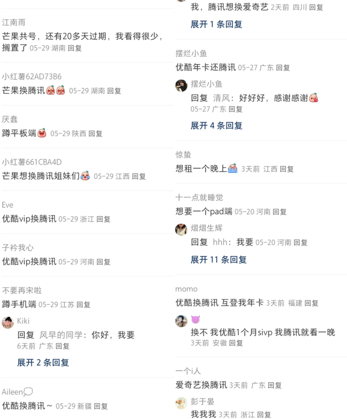早在《庆余年2》开播初期,就有看剧心切的网友,用手里的优酷、爱奇艺、芒果TV等视频平台会员,兑换腾讯视频会员。