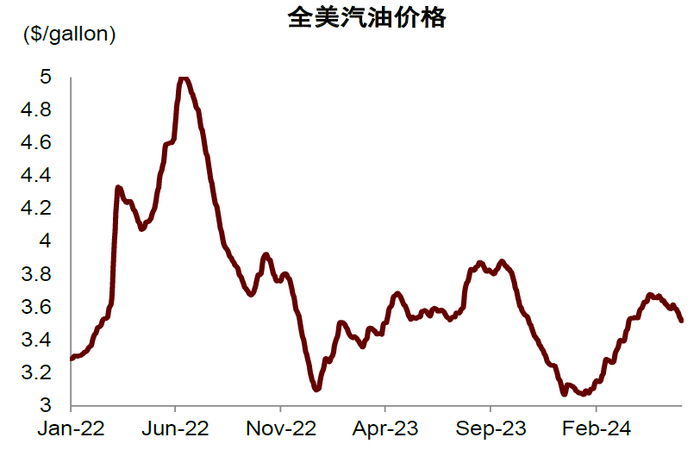 名义CPI环比大幅回落,反映前期商品上涨缺乏基本面支持,汽油价格出现明显调整(图表3)。