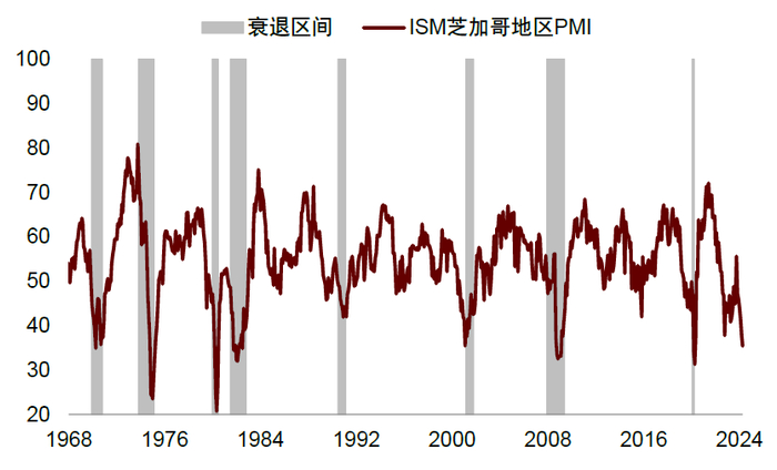 图表7:ISM芝加哥地区PMI已接近衰退时期水平