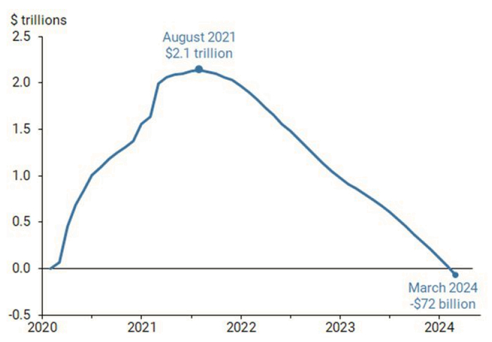 图表11:旧金山联储测算美国家庭超额储蓄在3月份已经耗尽