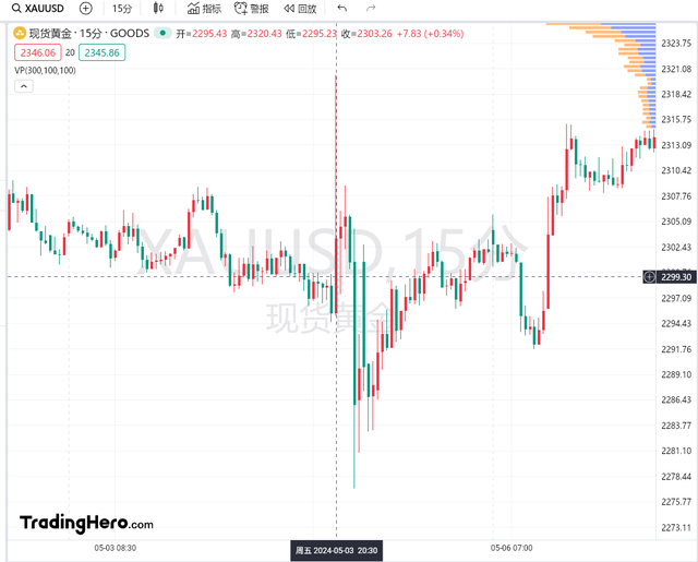非农的表现对金融市场的多个资产类别都有显著的影响,因为它是衡量美国经济健康状况的重要指标之一。数据公布之前,华尔街会进入观望模式。数据公布后,如果实际公布值与经济学家的共识相差甚远,可能引发重大的金融市场波动。比如,2024年5月公布的四月非农报告低于预期,现货黄金15分钟内波动达25美金,美元指数则短线大幅下挫。