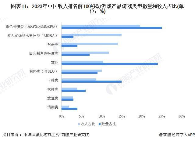 纵观游戏产业近年来格局,MMORPG、MOBA、FPS仍是现金牛“三大项”,但其位置正在不断改变。据前瞻产业研究院:2023年,在中国移动游戏收入排名前100的产品中,角色扮演类(ARPG/MMORPG)游戏在数量和收入占比上均排名第一,分别占比25%和20%。二次元游戏显然绝大部分归类为此,这同样印证了近两年来,市场出现的《原神》“后遗症”。以腾讯为主的头部厂商,通过买买买提升二次元研运“战力”,输出二游新品。