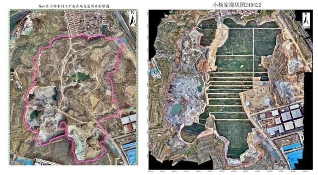 阳光穿过云层,洒落在麦田上,微风轻拂,麦穗摇曳,形成金色的麦浪。“这片地曾是一座露天砂石场,于2016年关闭。由于过去不合理的挖山开采,导致1200亩土地损毁、地形地貌景观破坏,留下‘生态伤疤’,甚至还存在一些安全隐患。”福山区自然资源局国土空间用途管制规划科科长王强拿出一张治理前的航拍图,曾经矿区山体裸露、草木不生,与眼前的金色麦浪形成鲜明对比。