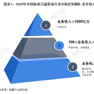 根据轨道交通装备业务收入作为划分依据,中国轨道交通装备行业可划分为3个竞争梯队。第一梯队的企业为中国中车,年业务收入超1000亿元;第二梯队企业的业务收入在100-1000亿元之间,包括中国中铁和中国通号;第三梯队企业的业务收入不超过100亿元,包括康尼机电、晋西车轴、新筑股份、今创集团、辉煌科技等。