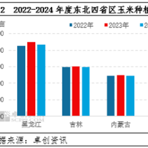卓创资讯初步评估,黑龙江地区玉米种植面积约为7650万亩,降幅2.55%,主要原因是黑龙江齐齐哈尔、哈尔滨、鹤岗、佳木斯、双鸭山、鸡西等部分地区大豆种植面积增加,玉米种植面积减少;内蒙古因为部分地区限水,以及玉米改种杂粮,种植面积小幅下降,玉米种植面积约5190万亩,降幅为0.57%;吉林地区有少数旱田改水田的情况,个别地区存在玉米改种杂粮的情况,预计2024年玉米种植面积约为5890万亩,降幅0.34%;辽宁种植面积相对稳定,本年度玉米种植面积在3820万亩左右,降幅0.26%。综合四省区种植面积来看,卓创资讯调研数据显示,2024/25年度东北玉米种植总面积约为22550万亩,同比去年减少260万亩左右(降幅3.72%)。