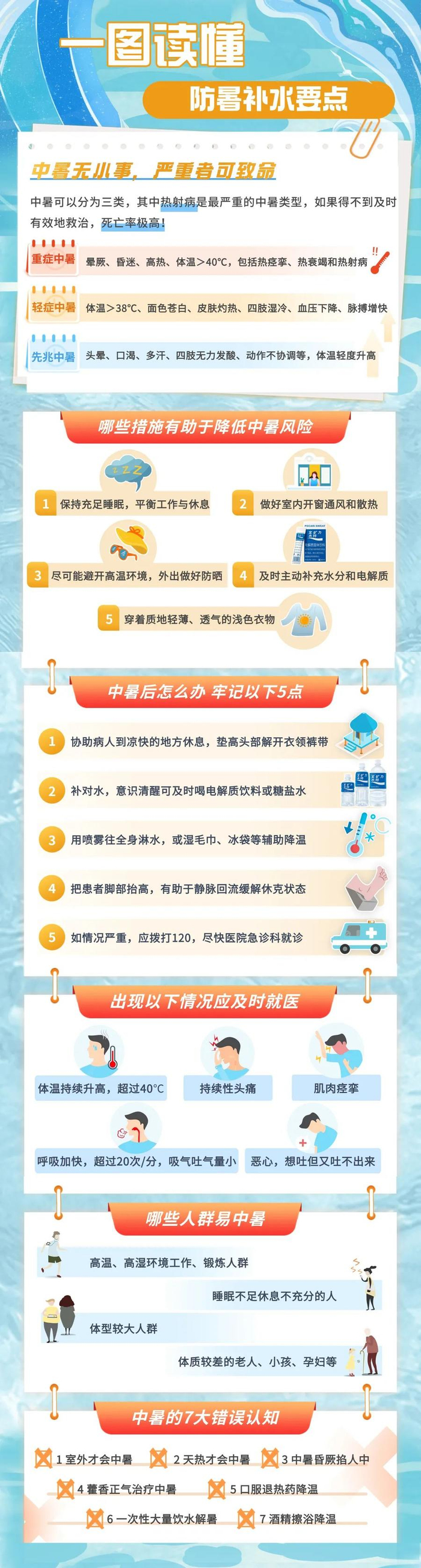 4. 有中暑症状时,需脱离高温环境、快速降温、及时补充水分,视情况就医处置。