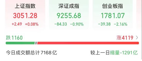 受大小盘风格轮动影响,A股今天呈现个股普涨、指数震荡的特征。截至收盘,上证指数上涨0.08%,深证成指下跌0.9%,创业板指下跌2.16%。沪深两市逾4100只个股上涨。