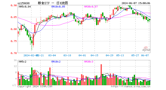 规模方面,截止6月6日,粮食ETF(159698)最新份额为2.50亿份,最新规模为2.07亿元。回顾2023年12月29日,粮食ETF(159698)份额为3.16亿份,规模为2.76亿元。即该基金今年以来份额减少20.89%,规模减少24.89%。