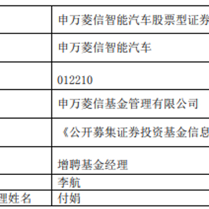 申万菱信智能汽车增聘基金经理李航