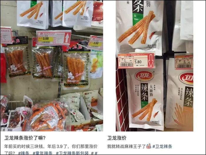 作为拥有24年历史的老牌品牌,卫龙辣条产品一直深受消费者喜爱和认可。然而,在“克重不足”事件背后,消费者也不禁对卫龙近年来产品连续涨价的行为产生了疑虑。