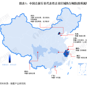 从产业链环节来看,北京地区的会展产业链布局相对完善,拥有较多上游环节的企业和部分中游环节企业。聚焦在中游环节,上海地区的业内代表性企业较多,包括内资的兰生股份以及外资的杜塞尔多夫展览、法兰克福展览等。