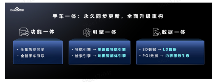 百度地图V20是全球首个“手车一体”地图。为实现这一创举,百度地图把过去近20年在手机端和车机端的代码重写一遍,做到了手机地图和车机地图同步更新,不仅数据一体、引擎一体,更做到功能一体。