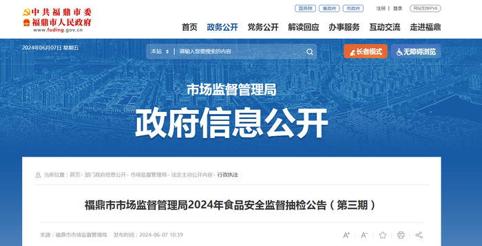 【福建省】福鼎市市场监督管理局2024年食品安全监督抽检公告(第三期)