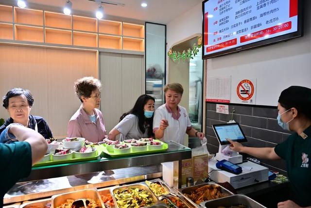 社区食堂的营业时间为午餐10:30—14:00,晚餐16:30—20:00,营业时间段较长。社区食堂运营方负责人何平解释,拉长营业时间,是为了兼顾社区老人习惯的用餐时间,以及辖区白领的午休和下班时间,尽可能满足“白领+白发”两大群体的就餐需求。