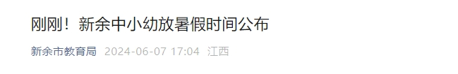 幼儿园、小学、初中、特教学校和中职学校定于7月1日,高中定于7月6日暑假放假。全市中小学校(含幼儿园、特教学校、中职学校)2024年秋季学期9月1日开学。各地各校要严格执行放假时间安排,不得擅自提前或推后,严禁挤占学生休息时间。