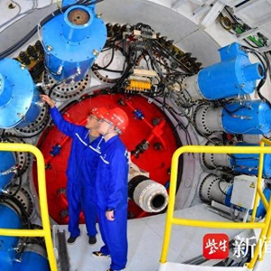 中铁大盾构制造基地,技术人员查看盾构机产品