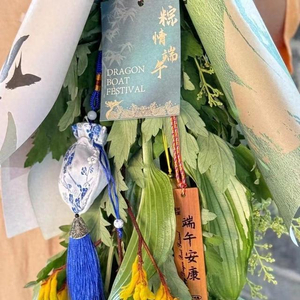 “今年我们设计了艾草门挂、车挂、花束三款产品,除了选用艾草、菖蒲、玉簪、樟果、袋鼠爪等寓意吉祥的叶材外,还配有国风刺绣的香囊等装饰,价格从90多元到200多元不等。”南京初见花礼馆主理人王娟告诉记者,每款产品制作耗时约三四十分钟,东西越小越费事。“门店早在5月初就接受预订了,除了散客购买,还有不少企事业单位的团购订单。”