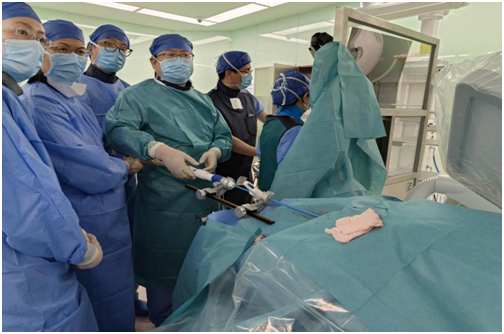 近日,在张运院士和张澄主任指导下,山东大学齐鲁医院心内科安贵鹏主任医师带领的结构性心脏病团队完成了省内首例经导管三尖瓣环修复术,标志着山东大学齐鲁医院率先开启了心脏瓣膜病四瓣皆可微创介入治疗的新时代。术中应用全球首创的K-Clip系统,为一位重度三尖瓣反流患者成功实施了经导管三尖瓣介入修复术。患者术后三尖瓣反流明显改善,已于术后第四天顺利出院。