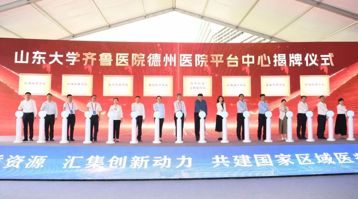 会上,于金明、董家鸿等与会嘉宾共同为诊疗中心、平台型中心揭牌;田卫东、陈鑫为国家区域医疗中心项目揭牌。德州市人大常委会副主任、山东大学齐鲁医院德州医院党委书记王晓东介绍了山东大学齐鲁医院德州医院国家区域医疗中心项目建设发展情况。山东大学齐鲁医院德州医院党委副书记、院长王东海宣读了“国家区域医疗中心建设”倡议书。