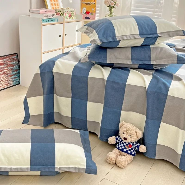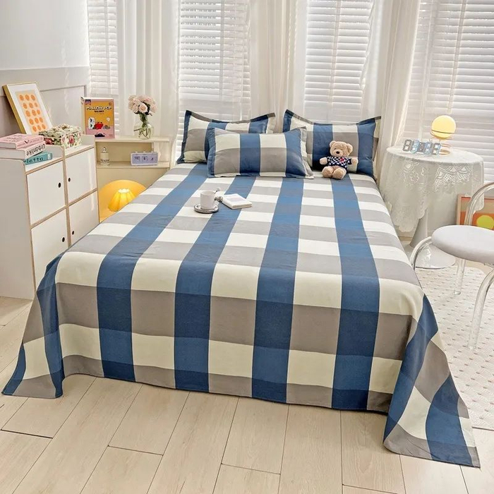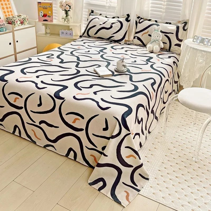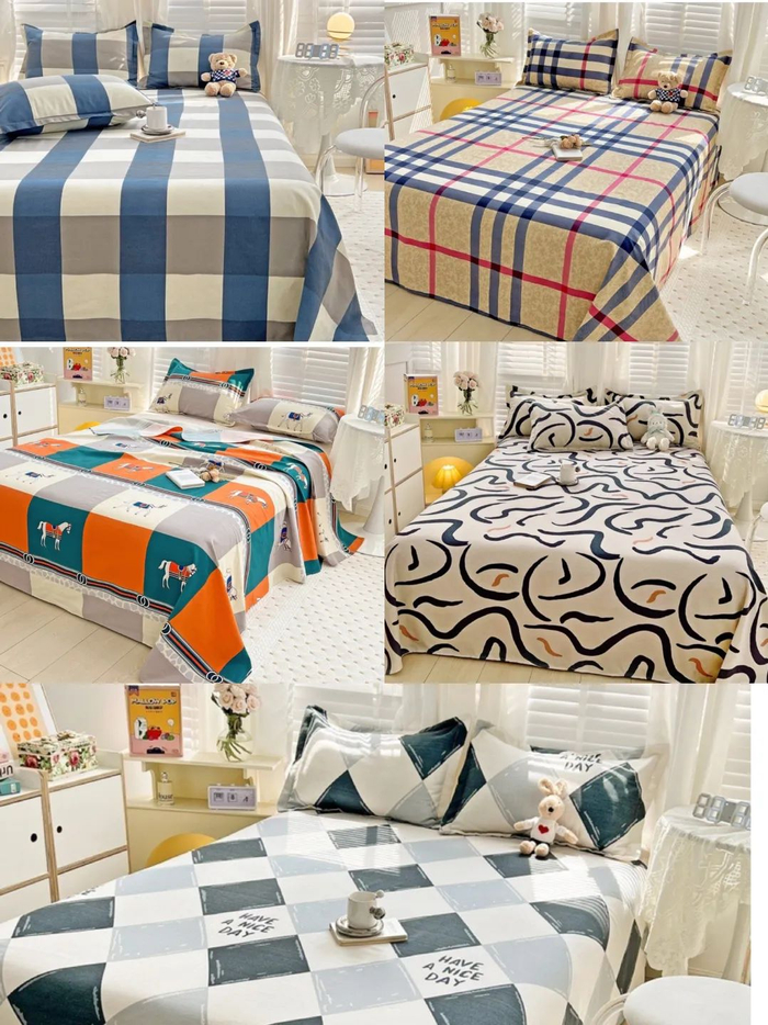 床单的尺寸是230*245cm,枕套48*74cm,可以平铺在床上,多出来的地方垂坠在床边,非常好看,兼容性很高,大床小床都通用。